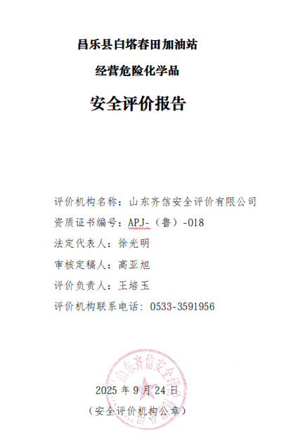 昌乐县白塔春田加油站位于昌乐县鄌郚镇西后韩村西,该站成立于2006年11月17日,2016年11月2日取得昌乐县市场监督管理局核发的营业执照,投资人为张春田。该加油站主要从事汽油和柴油的经营,经营方式为零售。 根据《产业结构调整指导目录(2024年本)》(国家发改委令第7号令)的规定,该加油站经营危险化学品项目不属于目录中的“鼓励类”、“淘汰类”、“限制类”项目,符合国家产业政策的要求。 该站于2020年12月18日取得《成品油零售经营批准证书》(证书编号:鲁油零售证书第3707053049号),有效期为2020年12月18日至2025年12月18日。该站持有的《危险化学品经营许可证》(证书编号:鲁潍危化经[2022]011040号),有效期自2022年10月08日至2025年10月07日。 依据《危险化学品经营许可证管理办法》(国家 安监总局令第55号,根据2015年5月27日国家安全监管总局令第79号修正)等法律、法规、文件的要求,危险化学品经营许可证的有效期为3年,有效期满后需要继续从事危险化学品经营活动的,应提出危险化学品经营许可证的延期申请,该加油站为需要更换危险化学品经营许可证的企业。为此,根据《危险化学品安全管理条例》等有关法律、法规规定,该站需更换危险化学品经营许可证,需对其经营条件进行安全评价。 自2022年10月08日取得《危险化学品经营许可证》以来,该加油站总平面布局、周边环境、加油工艺、危险化学品的储存能力未发生变化。营业期间未发生过安全事故。 该加油站现有从业人员4人,其中安全管理人员1名。该站已建立了安全生产责任制度、安全管理制度和安全操作规程等,制定了生产安全事故应急救援预案,成立了安全生产领导小组,配备了安全员,主要负责人和安全员取得了安全生产知识和管理能力考核合格证。其他从业人员经本单位培训考核合格。 该加油站主营汽油、柴油等成品油,共有加油机4台,1台双枪92#加油机,1台单枪95#加油机,1台双枪0#加油机,1台单枪-10#加油机(加油机呈东西两排布置,东侧一排自北向南依次为-10#、95#,西侧一列自北向南依次为0#/0#、92#/92#),汽油主要经营92#、95#,柴油冬季经营-10#,其它季节经营0#。无自助加油机。该站设有埋地卧式内钢外玻璃纤维增强塑料双层储罐4台,其中汽油储罐2台,容积均为30m3,柴油储罐2台,容积均为30m3,柴油折半后计入加油站储罐总容积为90m3,该站为三级加油站。该站采用自吸式加油工艺,该站加油管道为双层热塑性管材,卸油、通气、油气回收系统管道为流体输送用无缝碳钢管材,加油工艺管道全部埋地设置,且不穿越站房。加油机加油软管设置安全拉断阀,油罐设有带有高液位报警功能的液位监测报警系统等信息化设备。加油机机体、值班室内设置紧急切断按钮,并实现手动复位。加油站设有油罐渗漏检测系统、汽油卸油油气回收系统、加油油气回收系统、三次油气回收系统。 |