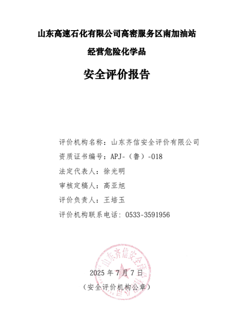 山东高速服务开发集团有限公司青银路青州服务区南区加油站位于山东省潍坊市青州市高柳镇青银高速公路K207公里处青州服务区南侧,该站始建于2012年,2024年10月8日取得青州市行政审批服务局核发的新的营业执照,法定代表人为万春光。该加油站主要从事汽油和柴油的经营,经营方式为零售。 该站于2020年转让于山东中胜石油化工有限公司经营。2022年3月12日山东中胜石油化工有限公司与山东高速服务开发集团有限公司潍坊分公司签订解除经营权租赁合同,签订补充协议。2024年10月08日企业负责人由李庆变更为万春光。 根据《产业结构调整指导目录(2024年本)》(国家发改委令第7号令)的规定,该加油站经营危险化学品项目不属于目录中的“鼓励类”、“淘汰类”、“限制类”项目,符合国家产业政策的要求。 该站于2024年11月11日取得《成品油零售经营批准证书》(证书编号:鲁油零售证书第3700003011号),有效期为2020年12月21日至2025年12月21日。该站持有的《危险化学品经营许可证》(证书编号:鲁潍危化经[2022]007002号),有效期自2022年07月14日至2025年07月13日。 依据《危险化学品经营许可证管理办法》(国家 安监总局令第55号,根据2015年5月27日国家安全监管总局令第79号修正)等法律、法规、文件的要求,危险化学品经营许可证的有效期为3年,有效期满后需要继续从事危险化学品经营活动的,应提出危险化学品经营许可证的延期申请,该加油站为需要更换危险化学品经营许可证的企业。为此,根据《危险化学品安全管理条例》等有关法律、法规规定,该站需更换危险化学品经营许可证,需对其经营条件进行安全评价。 自2022年7月14日取得《危险化学品经营许可证》以来,该加油站于2024年10月8日将单位负责人由李庆变更为万春光,2023年加油站安装智能监控信息化系统,2024年加油区安装4台可燃气体报警仪,及其配套信息显示系统。该站总平面布局、周边环境、加油工艺、危险化学品的储存能力未发生变化。营业期间未发生过安全事故。 该加油站现有从业人员8人,其中安全管理人员1名。该站已建立了安全生产责任制度、安全管理制度和安全操作规程等,制定了生产安全事故应急救援预案,成立了安全生产领导小组,配备了安全员,主要负责人和安全员取得了安全生产知识和管理能力考核合格证。其他从业人员经本单位培训考核合格。 该加油站主营汽油、柴油等成品油,共有双枪加油机7台,其中4台汽油加油机,3台柴油加油机(停用1台),无自助加油机 。该站设有埋地卧式内钢外玻璃纤维增强塑料双层储油罐5台,2台50m3汽油罐,2台50m3柴油罐,1台50m3停用储罐(自西向东依次为0#、0#、停用储罐、92#、95#),柴油折半后计入,该站储罐总容积为150m3,该站为二级加油站。该站采用潜油泵式加油工艺,该站加油管道为双层热塑性管材,卸油、通气、油气回收系统管道为流体输送用无缝碳钢管材,加油工艺管道全部埋地设置,且不穿越站房。加油机加油软管设置安全拉断阀,加油机底部设置剪切阀,油罐设有带有高液位报警功能的液位监测报警系统等信息化设备。加油机机体、值班室内设置紧急切断按钮,并实现手动复位。加油站设有油罐渗漏检测系统、汽油卸油油气回收系统、加油油气回收系统、三次油气回收系统。 |